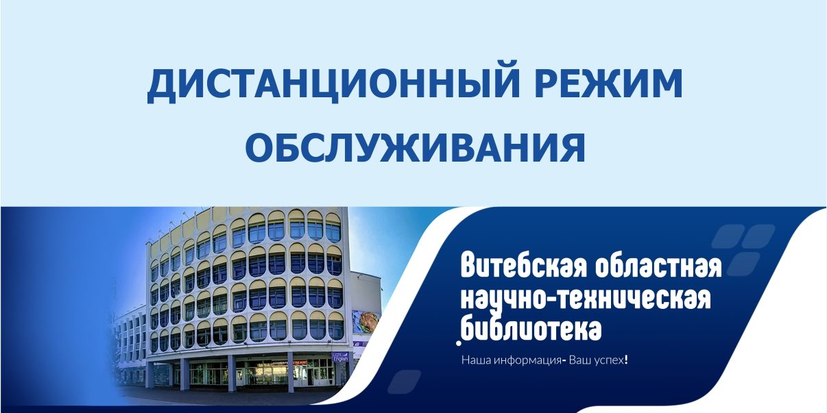 Обращаем ваше внимание на то, что с 1 апреля 2020 года на основании Решения Витебского городского исполнительного комитета от 27 марта 2020 года № 349, Витебский филиал РНТБ переходит на дистанционный режим обслуживания пользователей (без проведения массовых мероприятий и работы читальных залов).