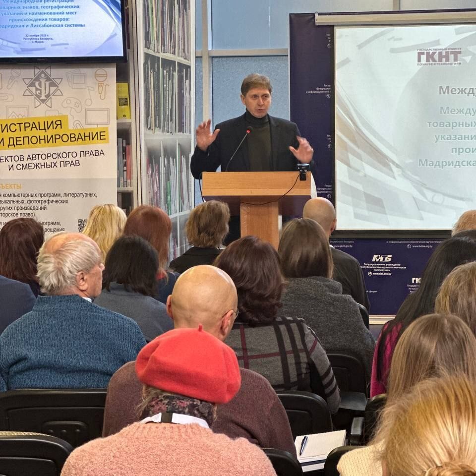 22 ноября 2023 года в конференц-зале Республиканской научно-технической библиотеки, прошел международный семинар «Международная регистрация товарных знаков, географических указаний и наименований мест происхождения товаров: Мадридская и Лиссабонская системы».