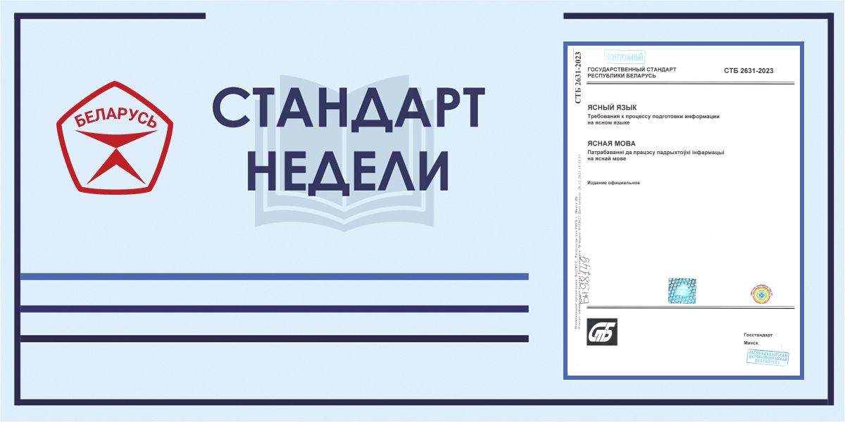 СТБ 2631-2023, BY «Ясный язык. Требования к процессу подготовки информации на ясном языке» устанавливает общие правила и принципы процесса подготовки информации на ясном языке, разработки продукта на ясном языке, а также требования к специалистам по ясному языку и их обязанностям в зависимости от выполняемых работ.