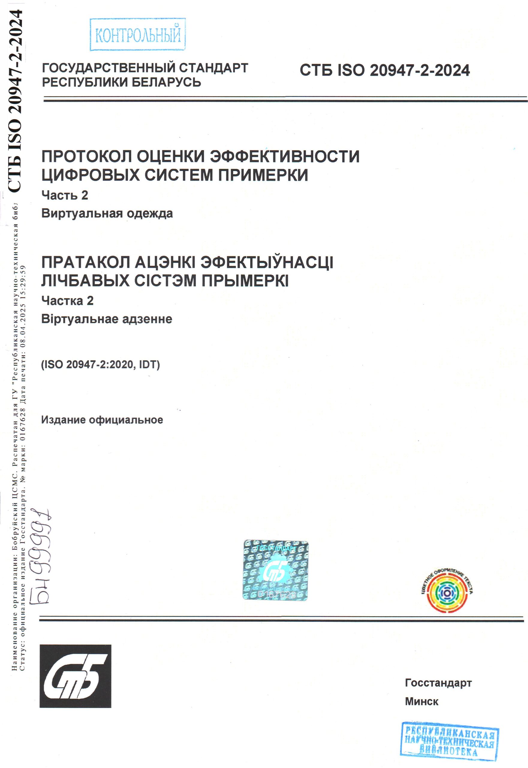 Стандарт идентичен международному стандарту ISO 20947-2:2020 «Протокол оценки эффективности цифровых систем примерки. Ч. 2. Виртуальная одежда» и вводится в действие с 1 сентября 2025 г.