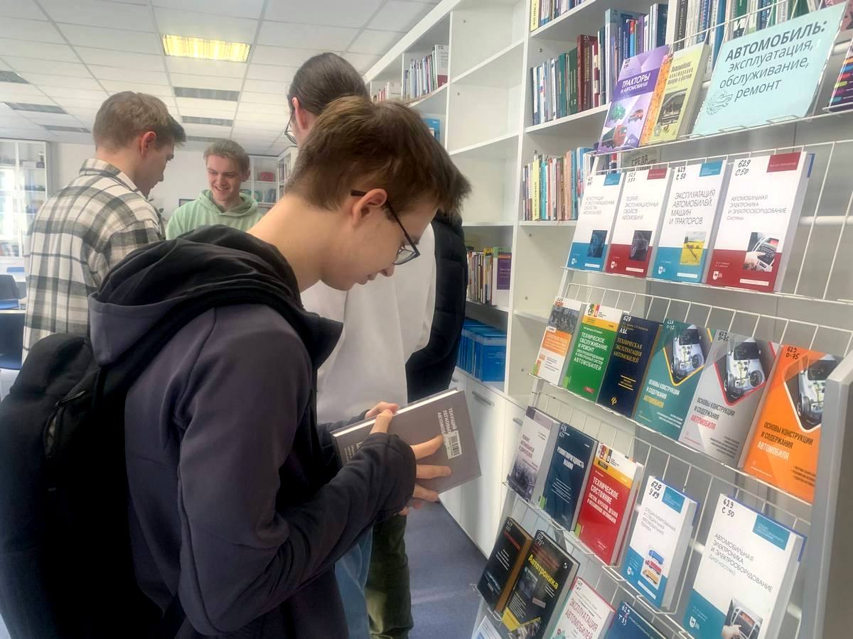 Участники мероприятия — будущие специалисты в области технического обслуживания и ремонта автомобилей, поэтому для них была представлена книжная выставка «Автомобильный транспорт: эксплуатация, обслуживание, ремонт». Ребята записались в библиотеку и получили читательские билеты.
