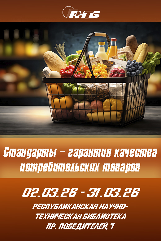В читальном зале отдела технических нормативных правовых актов (ком. 504) будет представлена тематическая выставка «Стандарты – гарантия качества потребительских товаров». На тематической выставке можно ознакомиться с текстами новых действующих ТНПА (ТР, СТБ, ГОСТ и др.), в которых представлена самая актуальная информация, касающаяся качества потребительских товаров, призванная стать ценным ориентиром для всех.