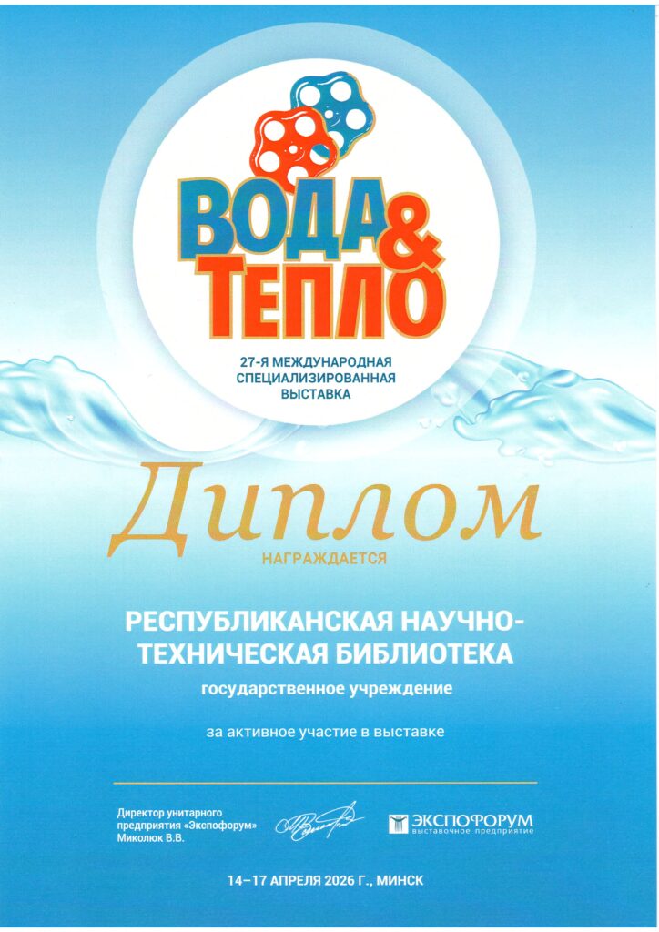 В рамках деловой программы выставки активное участие принимает Республиканская научно-техническая библиотека. Специалисты РНТБ знакомят гостей и участников форума с информационными возможностями и полным спектром услуг библиотеки. Посетители стенда могут получить консультации по доступу к профильным базам данных, техническим нормативам и патентной документации в сфере водоснабжения, тепловой энергетики и инженерной инфраструктуры.