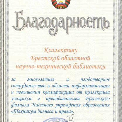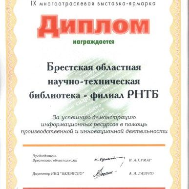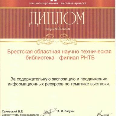 БРЕСТСКАЯ ОБЛАСТНАЯ НАУЧНО-ТЕХНИЧЕСКАЯ БИБЛИОТЕКА