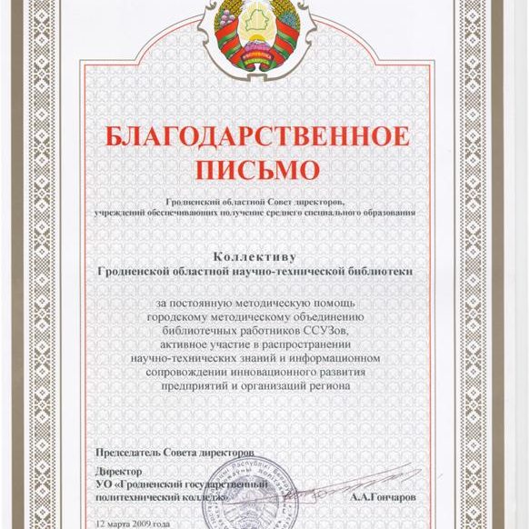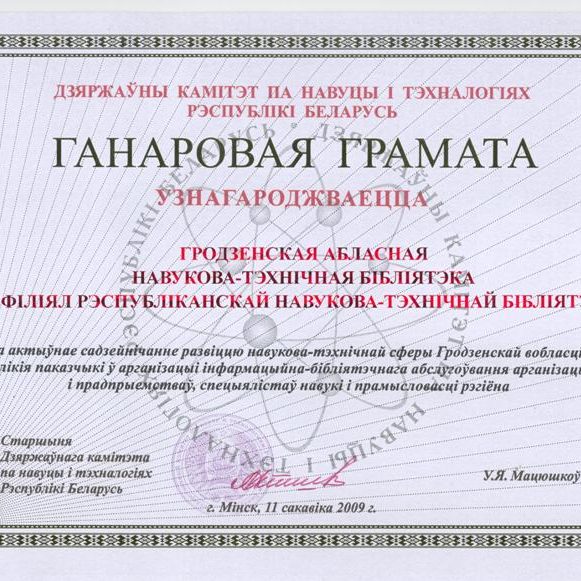 ГРОДНЕНСКАЯ ОБЛАСТНАЯ НАУЧНО-ТЕХНИЧЕСКАЯ БИБЛИОТЕКА