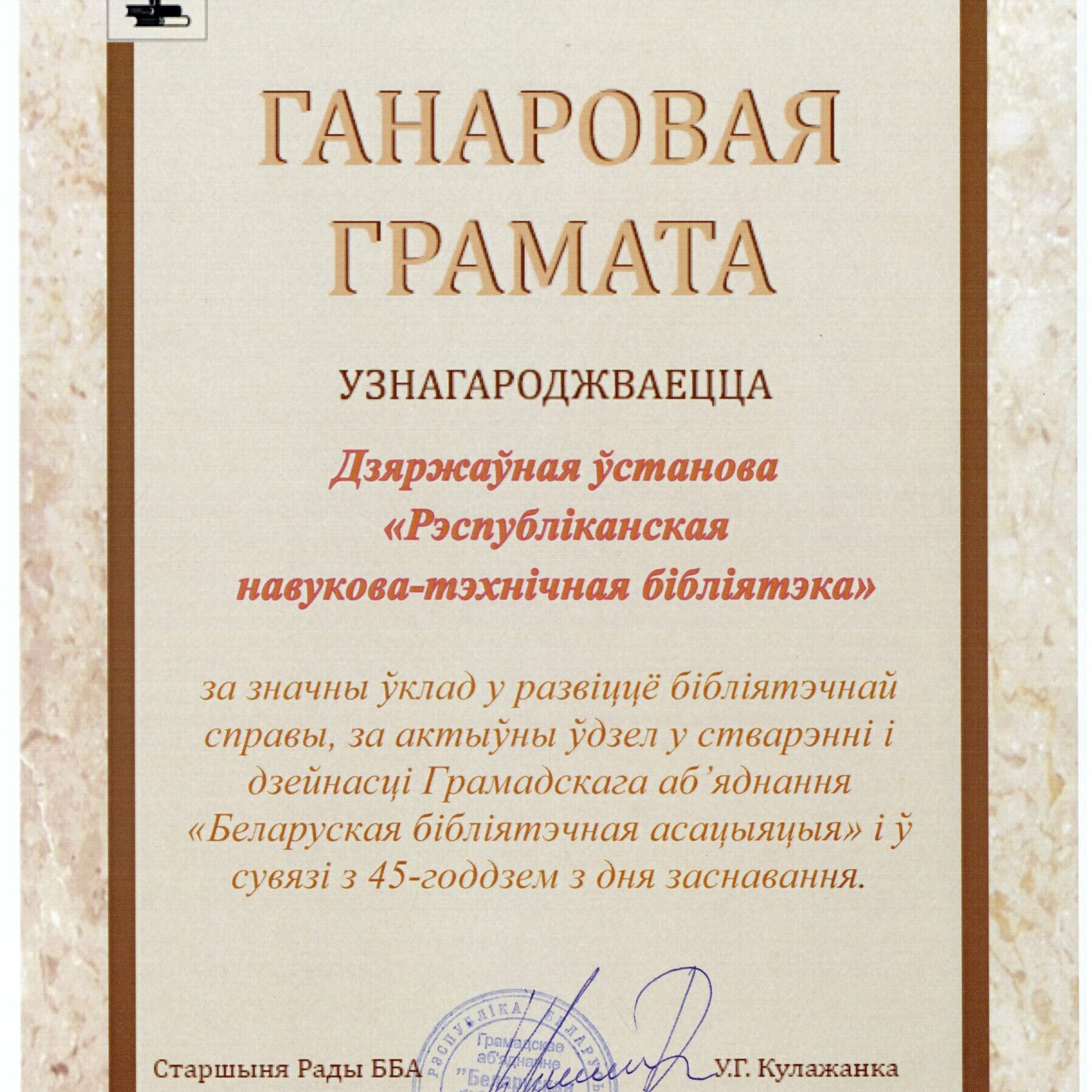 Награды библиотеки