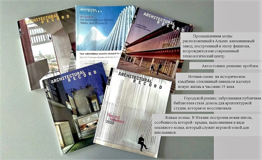 Architectural record — американский ежемесячный журнал по архитектуре, интерьерному и ландшафтному дизайну, практике и технологиям.